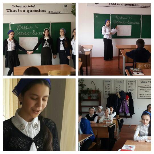 05.03.20155 марта согласно приказу №76 от 3.03.15. В 7-х классах проведены классные часы на тему. "Крым и Россия - вместе".Классные руководители Мусаева П.С. и Махмудова Л.А хорошо организовали данное мероприятие. Ответственно отнеслись к данному поручению. Учащиеся были активны в обсуждении данного вопроса и высказывали свои мнения.