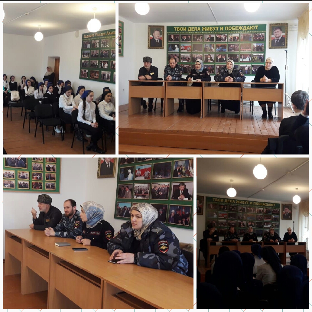 23.01.201923 января 2019года инспектором ПДН ОМВД России по Курчалоевскому району Сулеймановой А. Х-С. была проведена профилактическая беседа с обучающимися 9-11 классов. В ходе беседы были затронуты следующие вопросы: внешний вид, посещаемость, беспричинные пропуски занятий.